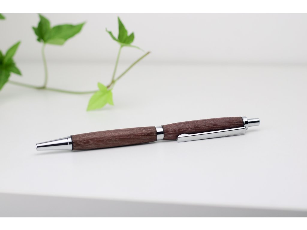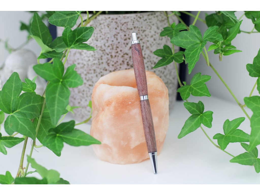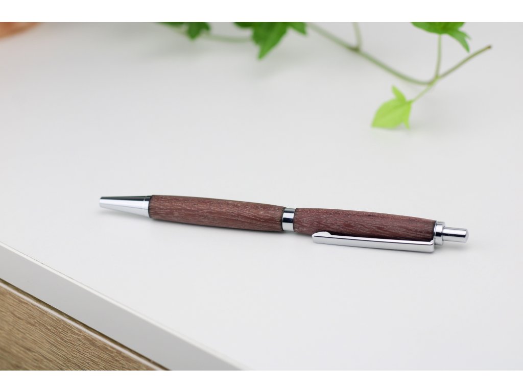 Ručně vyrobené: tělo kuličkového pera z odolného dřeva Amarant, známého svou výraznou kresbou a sytými červenofialovými až hnědými tóny