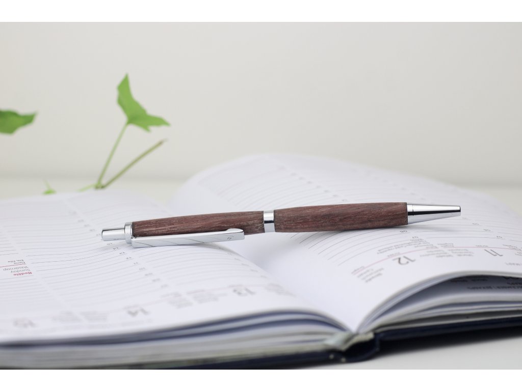 Při výrobě se používají kvalitní, často přírodní materiály – exotické dřevo, pryskyřice, mosaz, nerez, měď. Dřevo může být z českých lesů i z tropických oblastí, každý druh nabízí jinou barvu i texturu. Každé dřevěné pero si zaslouží povrchovou úpravu, která ho nejen ochrání, ale také zvýrazní jeho přirozenou krásu. Proto se často používá CA finish – jemná, ale odolná vrstva z cyanoakrylátu (podobného materiálu jako sekundové lepidlo), která dřevo uzavře, vyleští a dodá mu zrcadlový lesk.