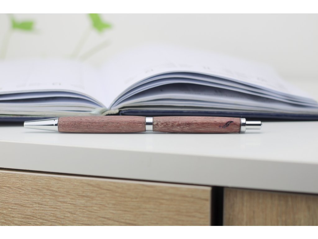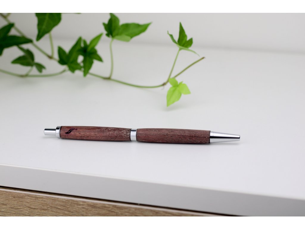 Ručně vyrobené: tělo kuličkového pera z odolného dřeva Amarant, známého svou výraznou kresbou a sytými červenofialovými až hnědými tóny