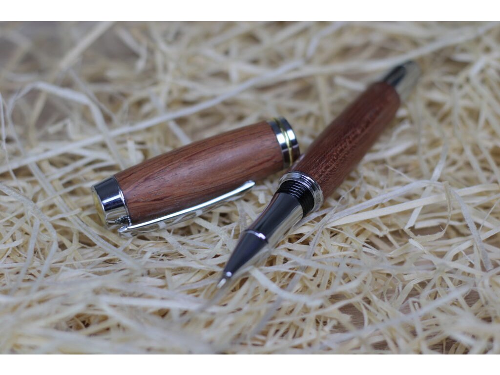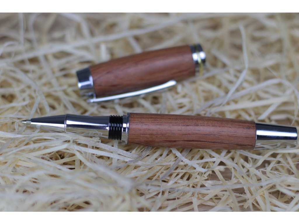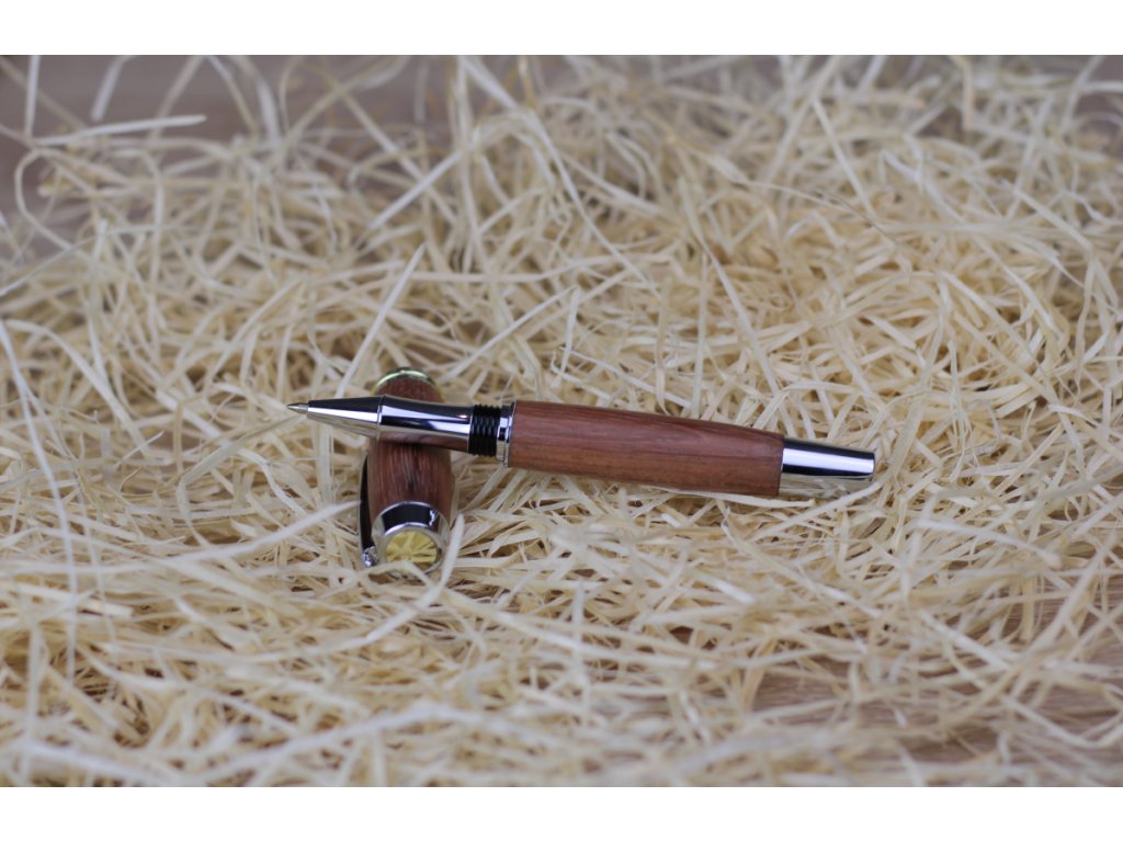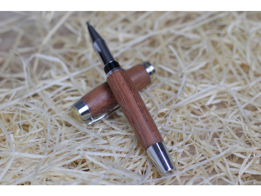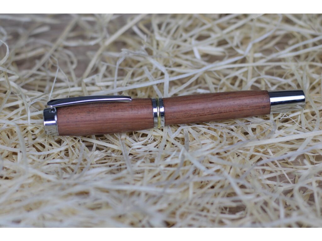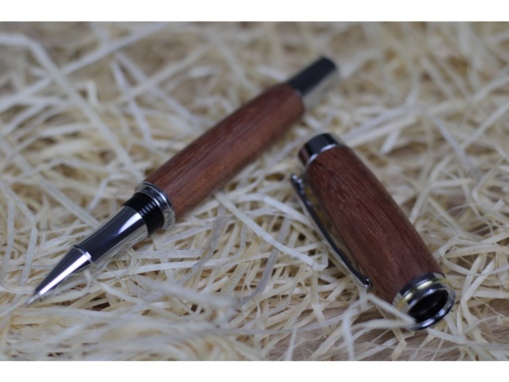 Tělo tohoto elegantního pera je ručně vyrobeno z exotického dřeva bubinga a ošetřeno voskovým olejem, který zvýrazňuje jeho přirozenou kresbu a dodává mu jedinečný vzhled.