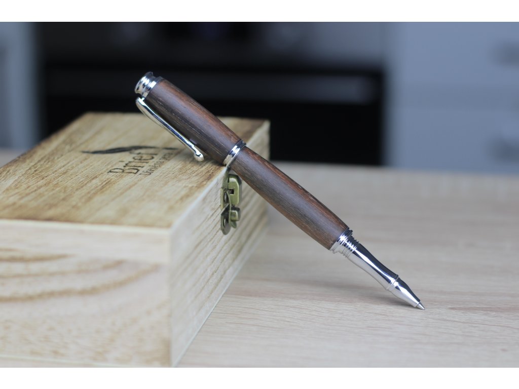 Při výrobě se používají kvalitní, často přírodní materiály – exotické dřevo, pryskyřice, mosaz, nerez, měď. Dřevo může být z českých lesů i z tropických oblastí, každý druh nabízí jinou barvu i texturu. Každé dřevěné pero si zaslouží povrchovou úpravu, která ho nejen ochrání, ale také zvýrazní jeho přirozenou krásu. Proto se často používá CA finish – jemná, ale odolná vrstva z cyanoakrylátu (podobného materiálu jako sekundové lepidlo), která dřevo uzavře, vyleští a dodá mu zrcadlový lesk.