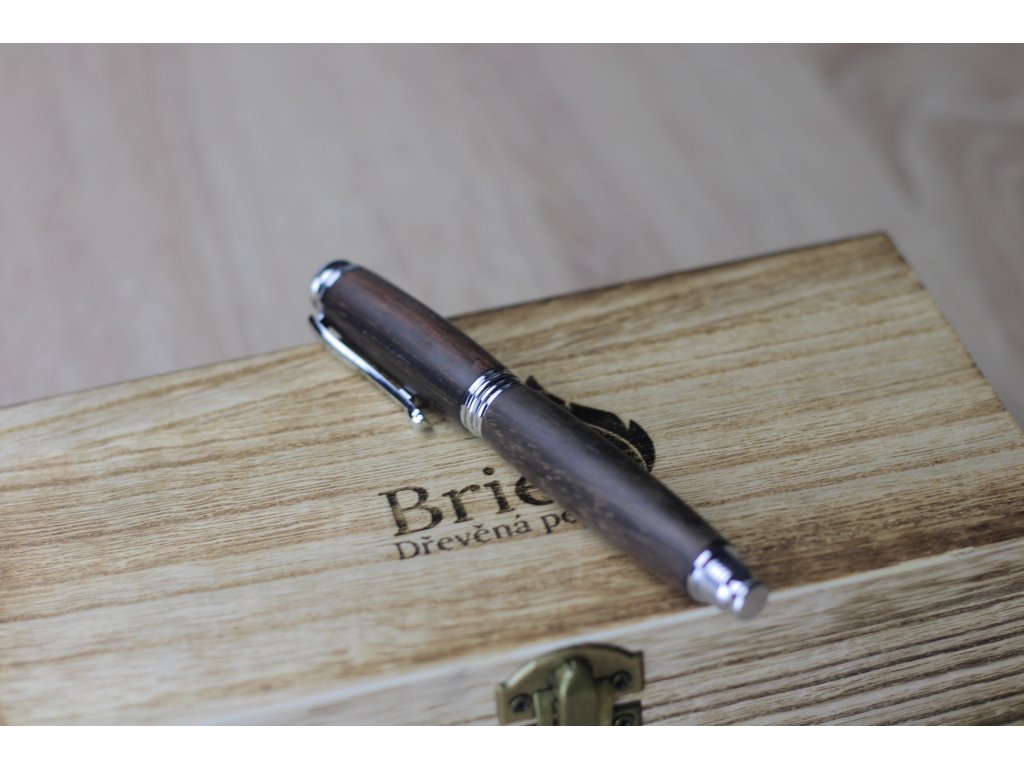 Sofistikovaný design – Spojení přírodního ebenového dřeva a stříbrných detailů dodává peru luxusní a nadčasový charakter.