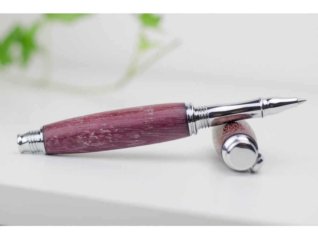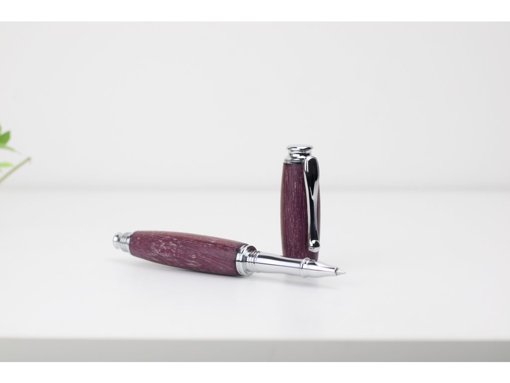 Toto elegantní kuličkové pero je vyrobeno z amarandového dřeva, jehož sytě purpurový odstín a jemná kresba okamžitě upoutají pozornost. Amarandové dřevo (známé také jako purpurové dřevo) vyniká nejen svým unikátním vzhledem, ale i vysokou pevností a odolností. Díky preciznímu ručnímu zpracování je každé pero originálem s vlastní strukturou a charakterem.