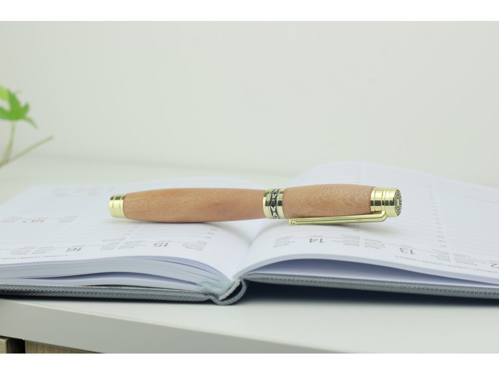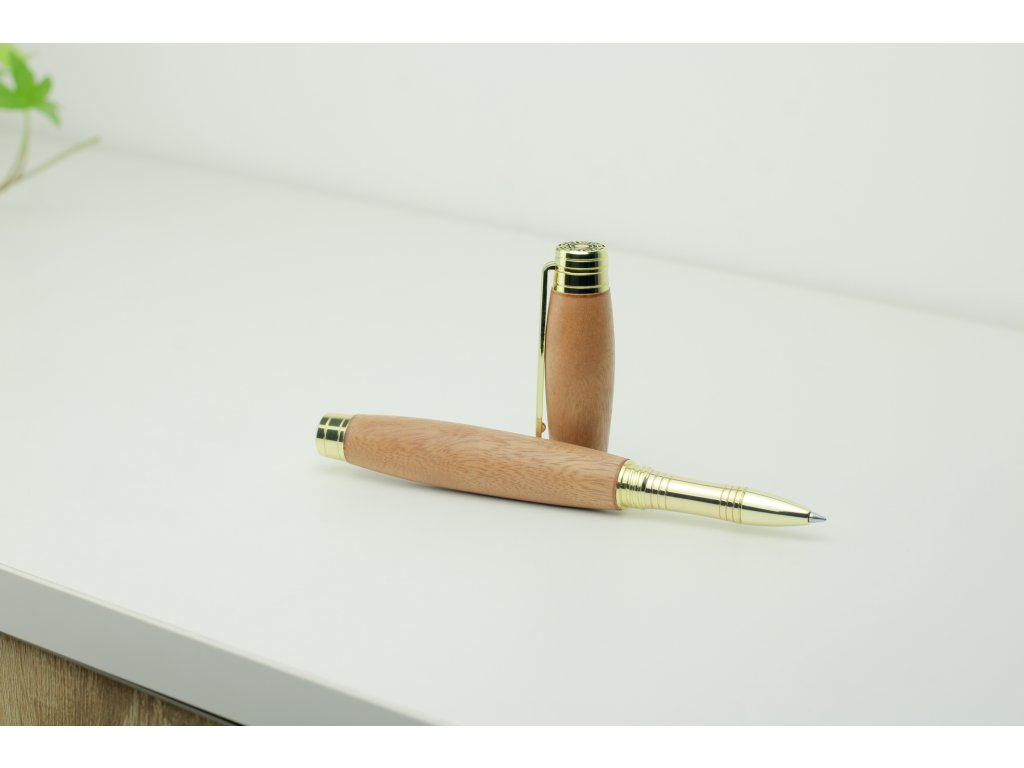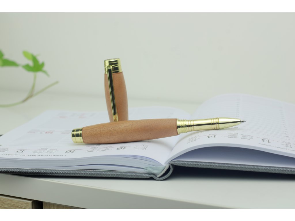 Sofistikovaný design: Ergonomický tvar pro příjemný úchop a lepší kontrolu při psaní, doplněný zlatými komponenty.