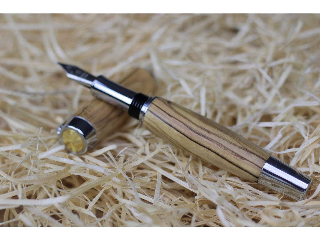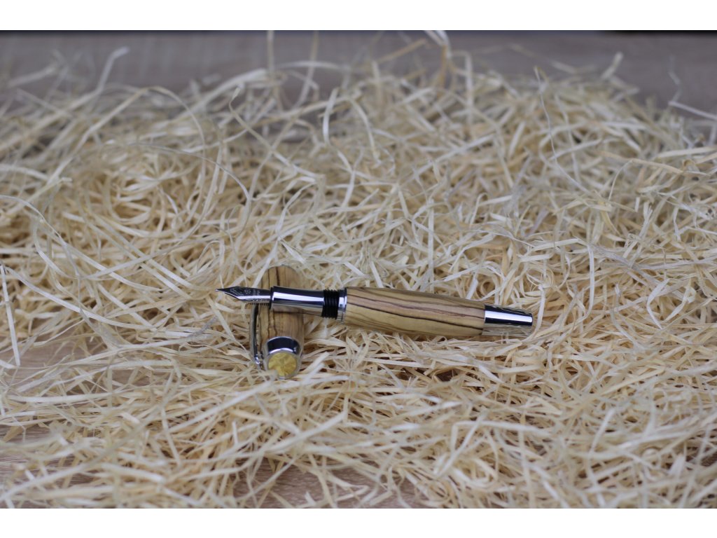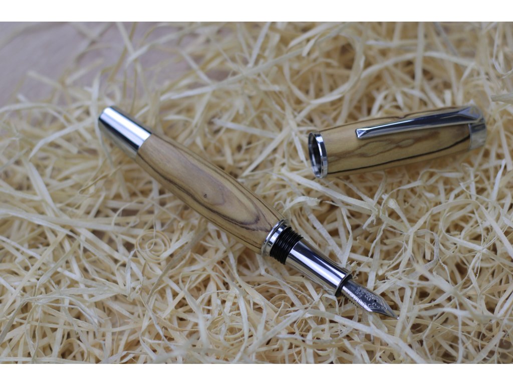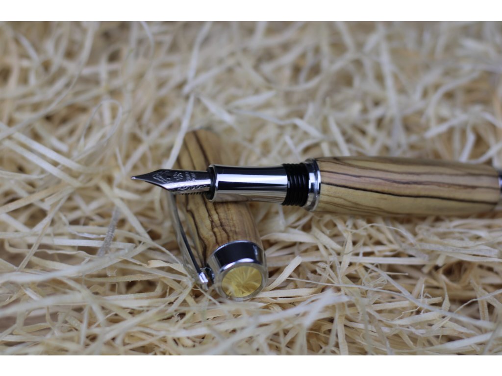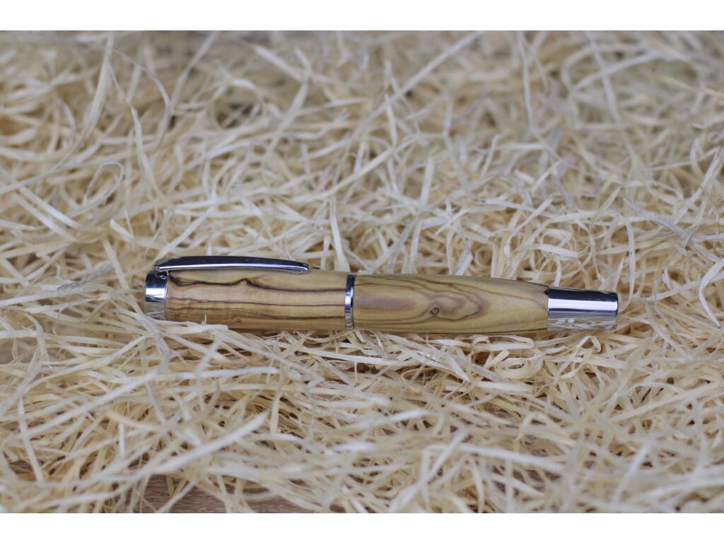 Toto jedinečné plnicí pero má tělo ručně vyrobené z kvalitního olivového dřeva, ošetřeného voskovým olejem pro hladký povrch a dlouhou životnost. Je vybaveno standardními euro bombičkami s modrou náplní, které zajišťují plynulé a spolehlivé psaní.
