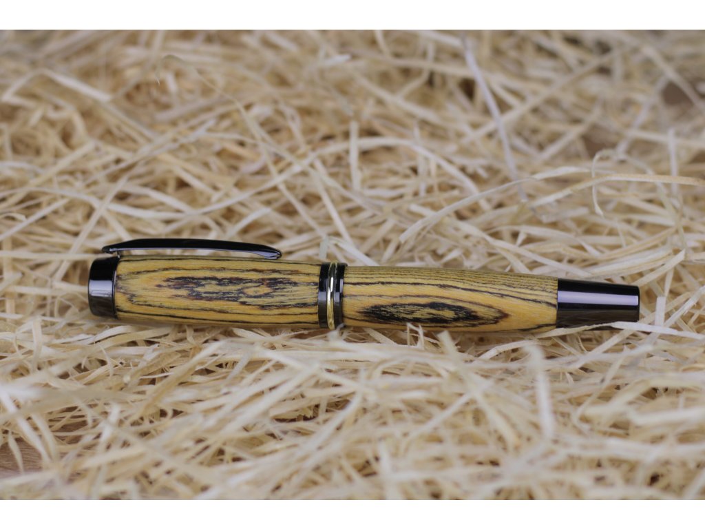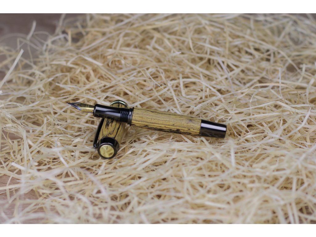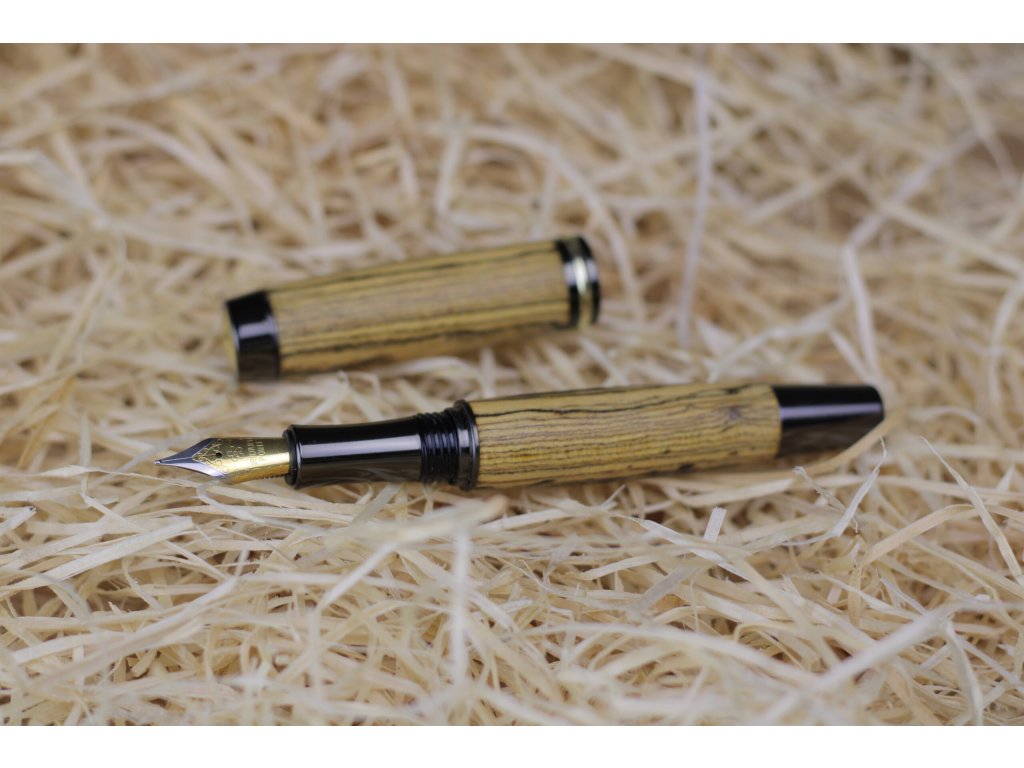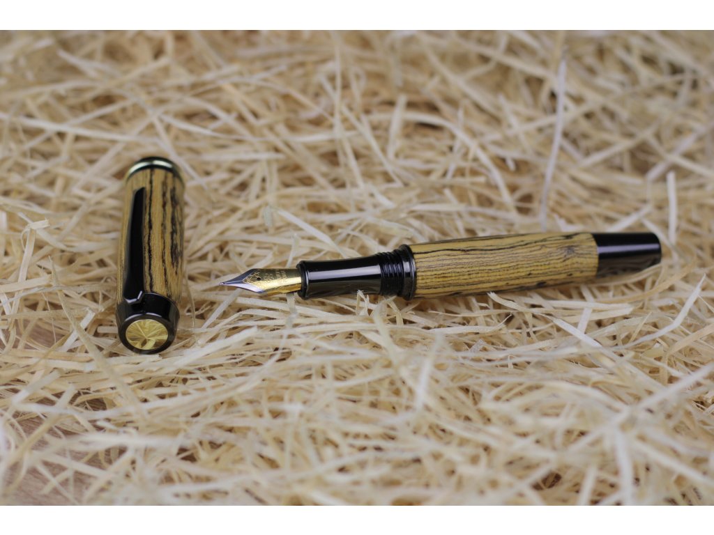 Toto jedinečné plnicí pero má tělo ručně vyrobené z kvalitního dřeva Bocote, ošetřeného voskovým olejem pro hladký povrch a dlouhou životnost. Je vybaveno standardními euro bombičkami s modrou náplní, které zajišťují plynulé a spolehlivé psaní.