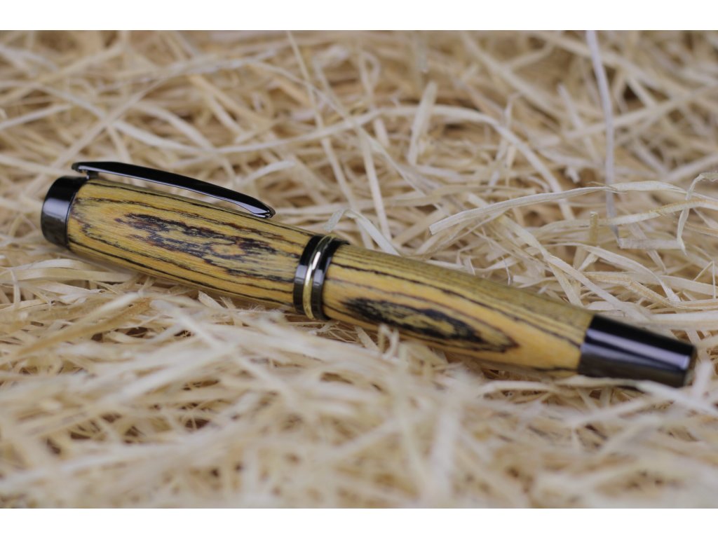 Při výrobě se používají kvalitní, často přírodní materiály – exotické dřevo, pryskyřice, mosaz, nerez, měď. Dřevo může být z českých lesů i z tropických oblastí, každý druh nabízí jinou barvu i texturu. Každé dřevěné pero si zaslouží povrchovou úpravu, která ho nejen ochrání, ale také zvýrazní jeho přirozenou krásu. Proto se často používá CA finish – jemná, ale odolná vrstva z cyanoakrylátu (podobného materiálu jako sekundové lepidlo), která dřevo uzavře, vyleští a dodá mu zrcadlový lesk.