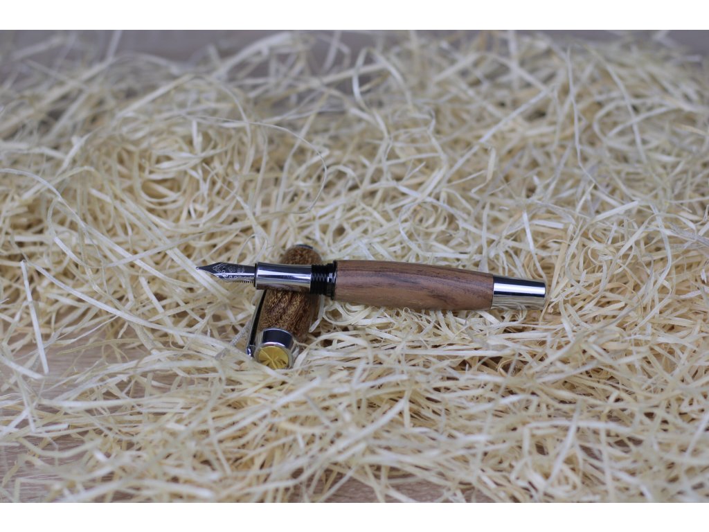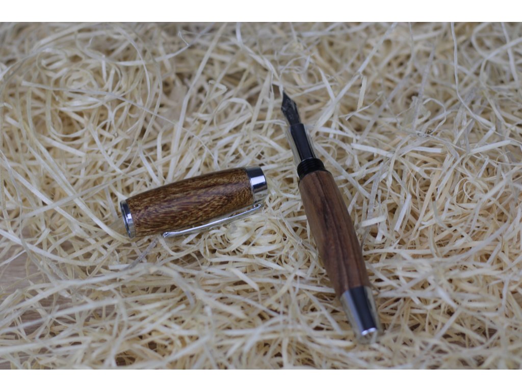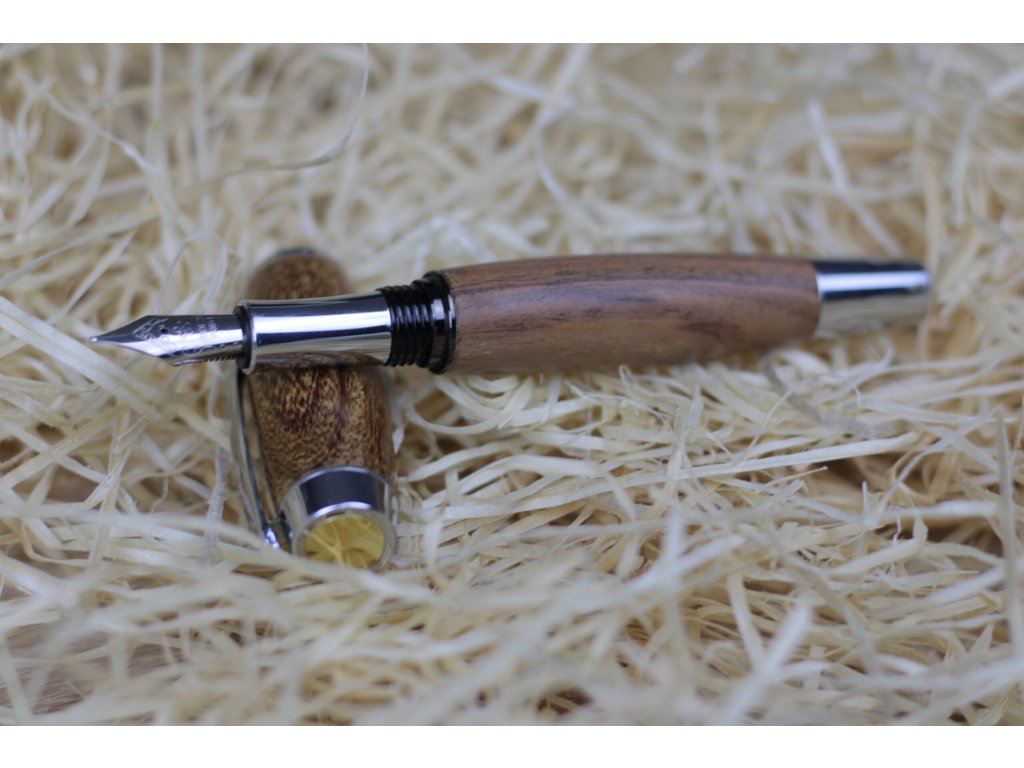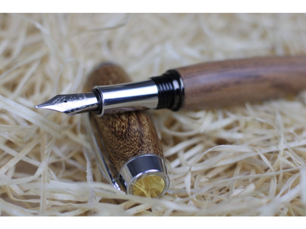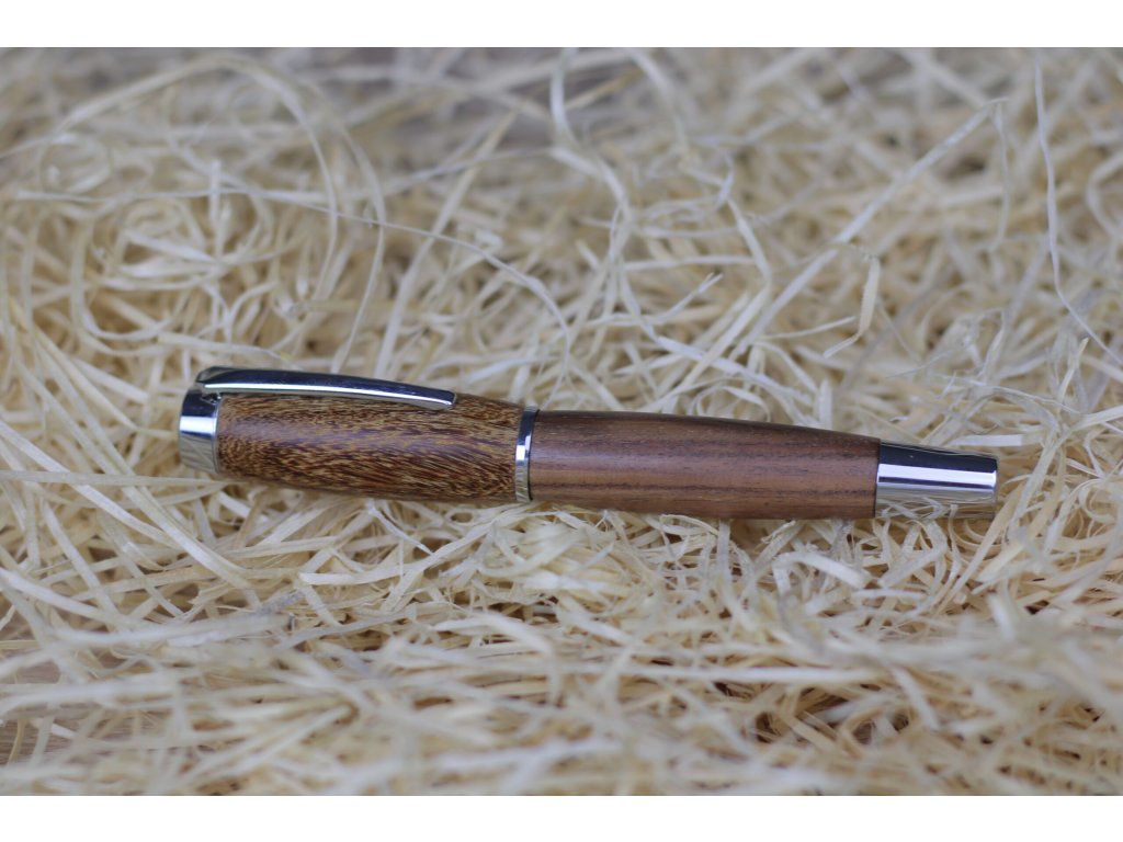 Toto jedinečné plnicí pero má tělo ručně vyrobené z kvalitního dřeva Ipe Lapacho a Palisandr santos, ošetřeného voskovým olejem pro hladký povrch a dlouhou životnost. Je vybaveno standardními euro bombičkami s modrou náplní, které zajišťují plynulé a spolehlivé psaní.
