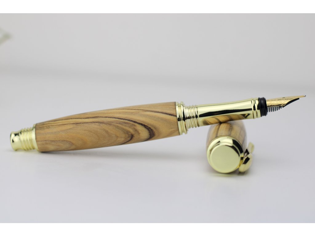 Tělo pera je ručně vyrobené z betlémské olivy, známé pro svou výraznou kresbu a světlý zlatavý odstín s tmavšími žilkami.