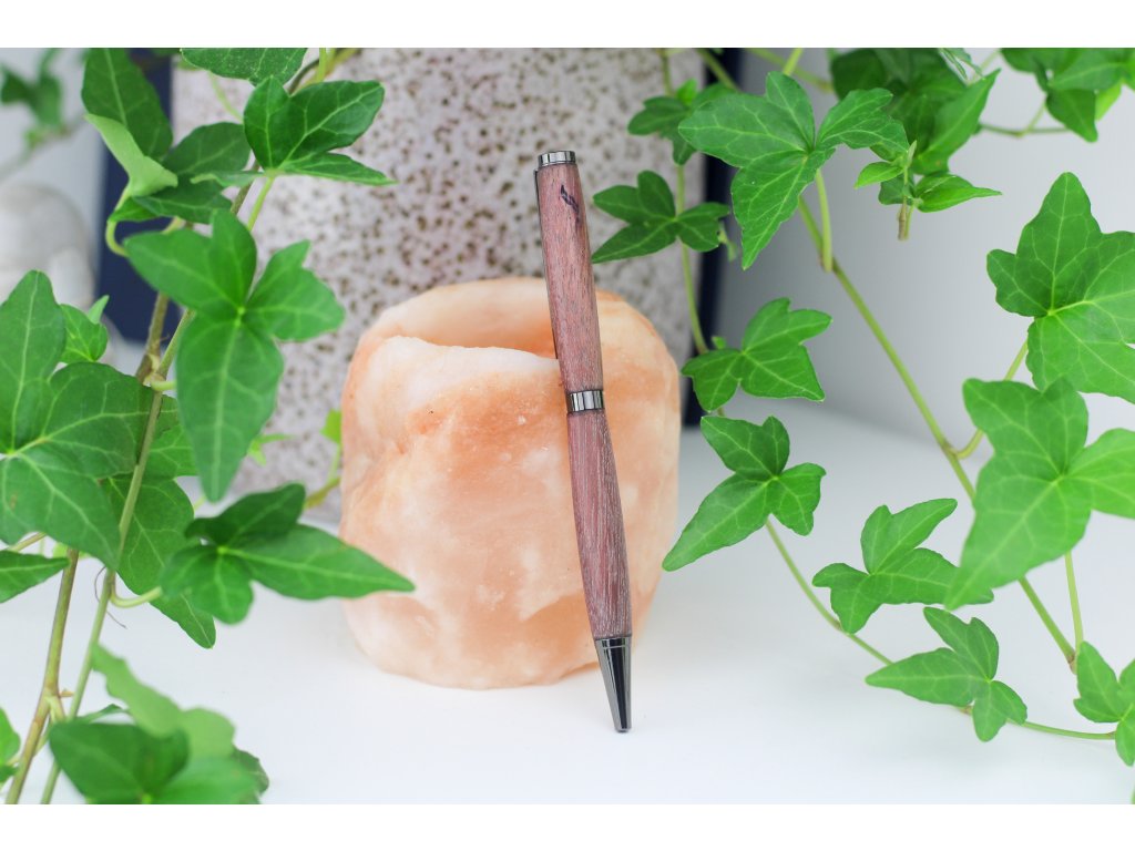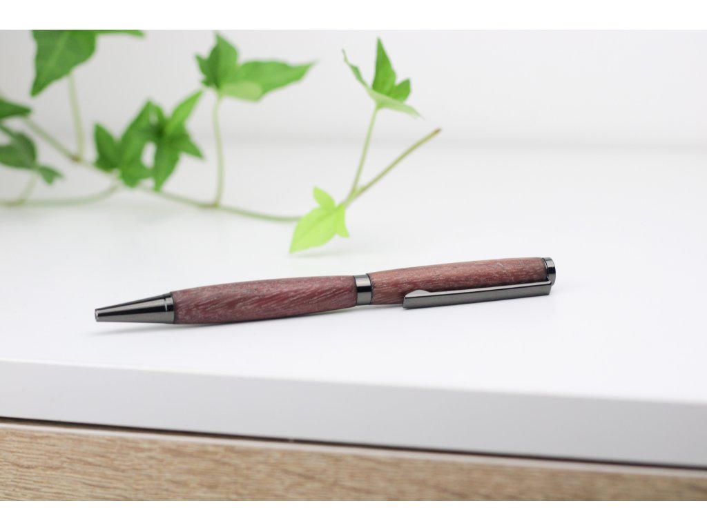 Ručně vyrobené tělo kuličkového pera z odolného dřeva Amarant, známého svou výraznou kresbou a sytými červenofialovými až hnědými tóny